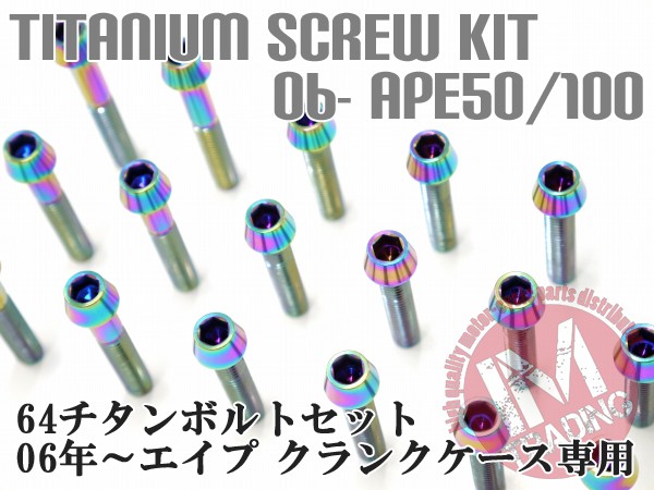 06年 エイプ50 100専用 64チタン製 クランクケースカバーボルトセット 14本 レインボー 焼き色あり Ti-6Al-4V エンジンカバーボルト