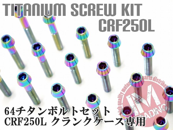 CRF250L専用 64チタン製 クランクケースカバーボルトセット 30本 テーパーキャップ レインボー 焼き色あり Ti-6Al-4V エンジンカバー