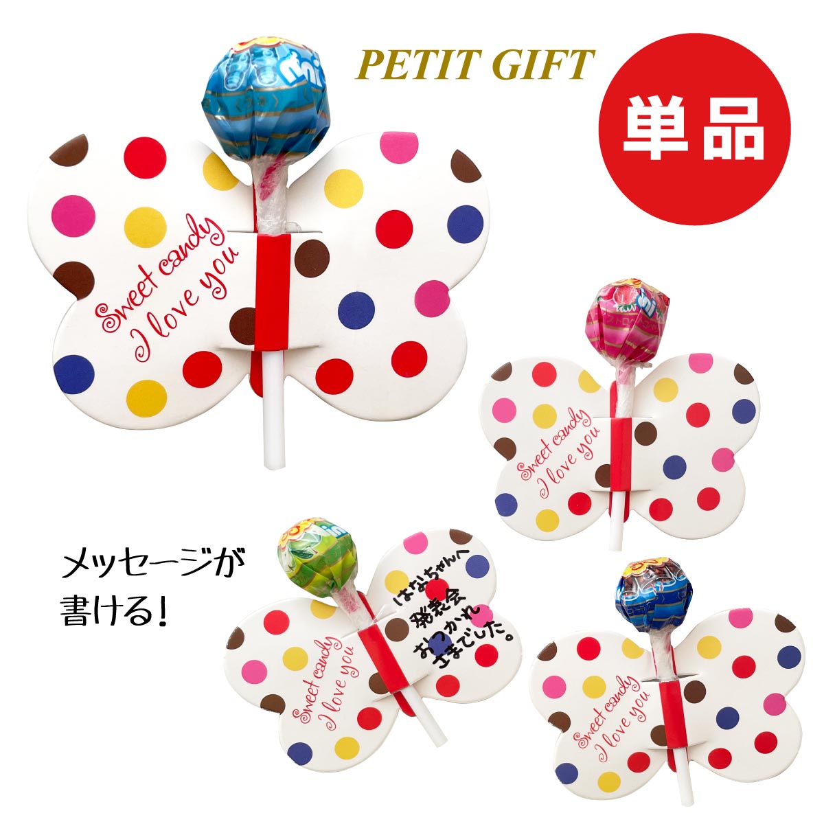 ちょうちょの羽に簡単なメッセージを書くことができるので、お子様の習い事や、発表会、あらゆるイベントなどで、ありがとうのメッセージを添えて渡す事ができます。