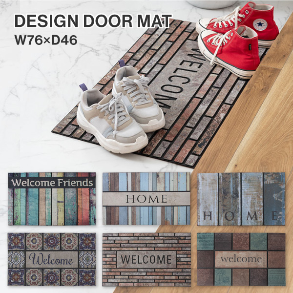 玄関マット 屋外 屋内 室内 ドアマット おしゃれ 洗える 泥落とし 薄型 薄い 水洗い可能 レトロ モダン 滑りにくい ゴム 76×46 土間用 新生活