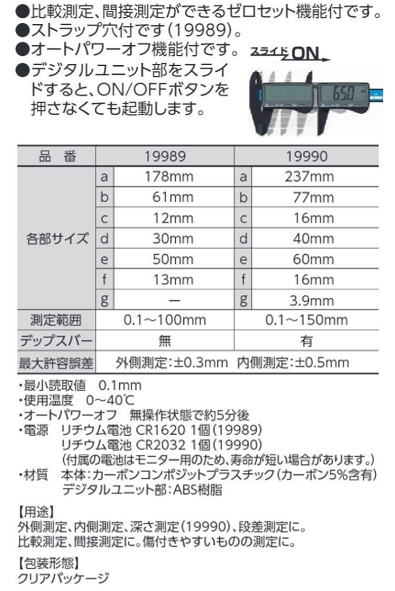 シンワ デジタルノギス 100mm カーボンファイバー製 大文字 11mm 19989