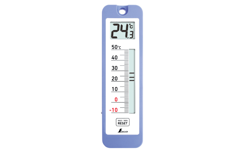 ●デジタル数字と温度バーのダブル液晶表示です。温度バーは現在温度・最低温度を一度に見ることができます。