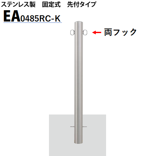 カネソウ 車止め Φ48.6×850 EA0485RC-K Eシリーズ ステンレス製 固定式 先付タイプ 両フック付