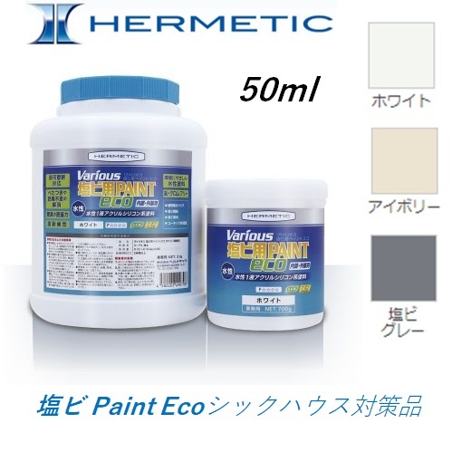 ヘルメチック ヴァリオス 塩ビ Paint Eco 50ml 水性1液アクリルシリコン系塩ビ用塗料 シックハウス対策品 ホワイト アイボリー 塩ビグレー