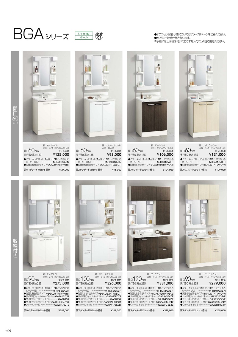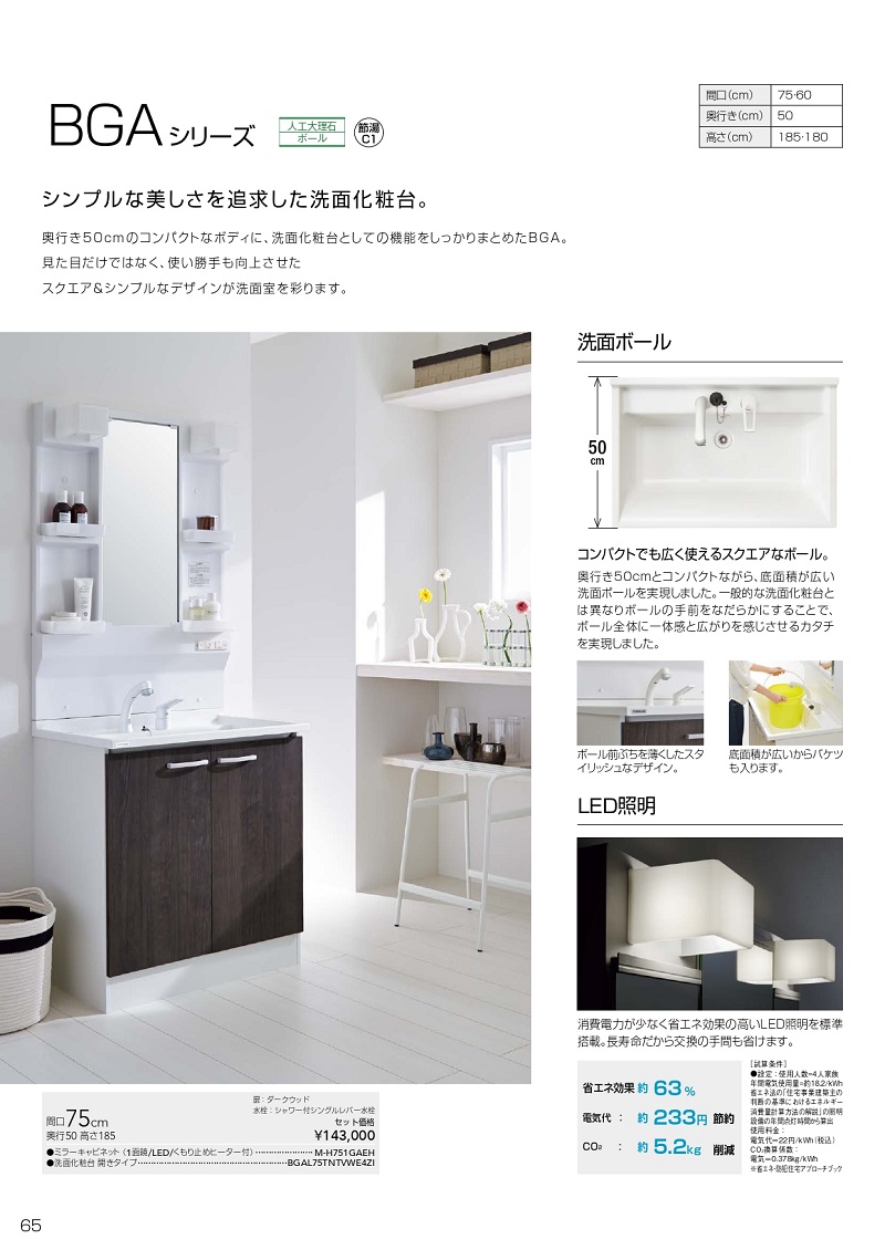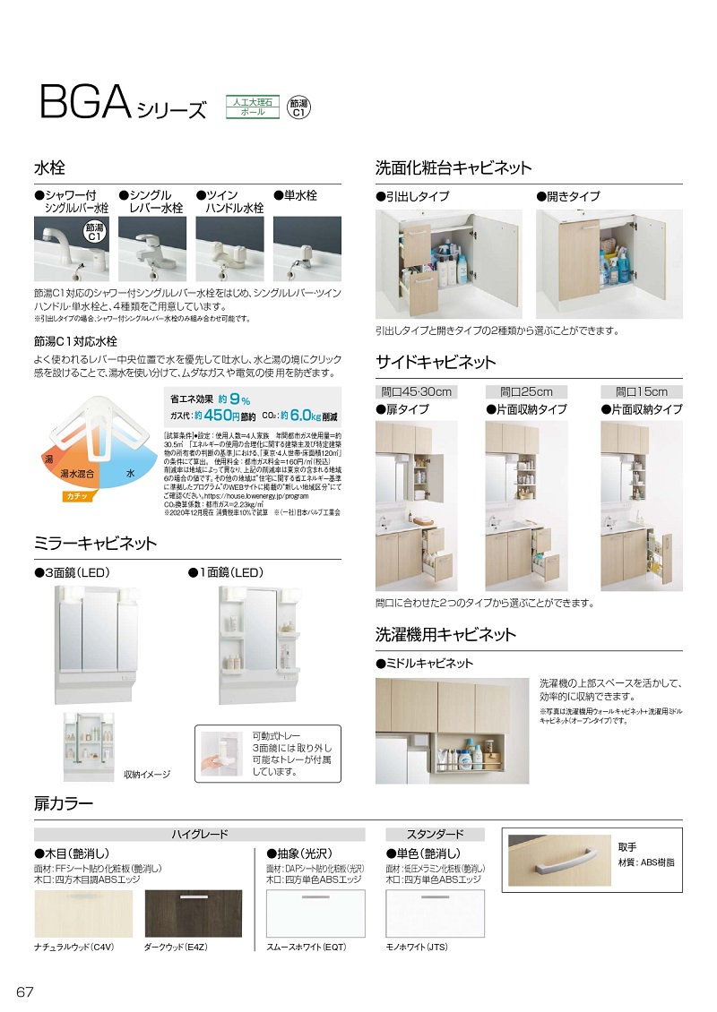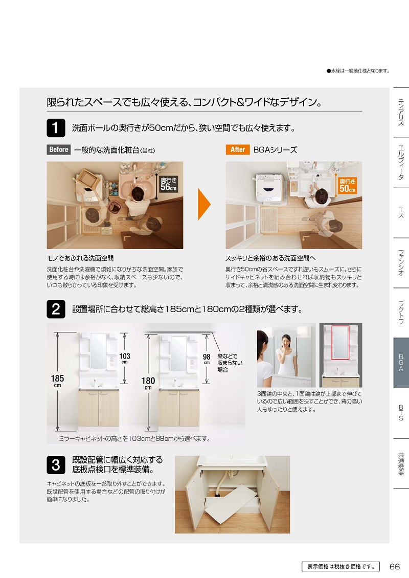 奥行き50cmのコンパクトなボディに、洗面化粧台としての機能をしっかりまとめたBGA。