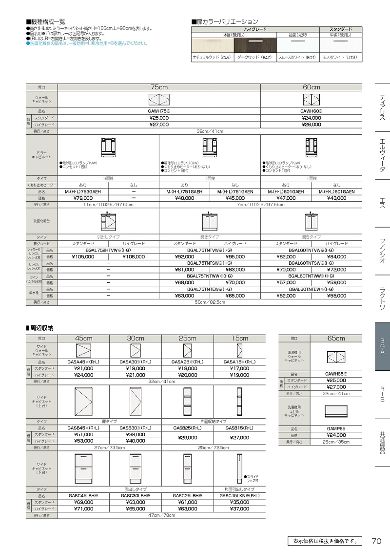 クリナップ GASA15 サイドウォールキャビネット BGAシリーズ 間口15cm ハイグレード 周辺収納