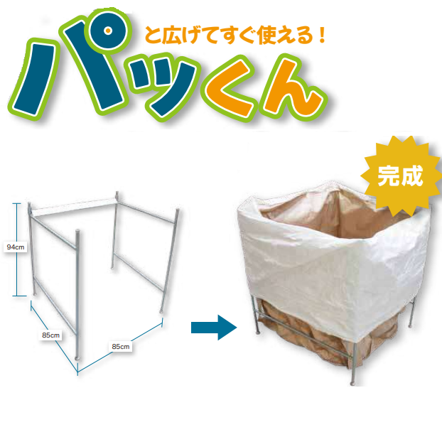 コンテナバッグスタンド 1t 約850×850×高さ940mm 簡単設置 パッくん 佐藤ケミカル 大型 コンテナバッグ コンテナバック フレコンスタンド トン袋