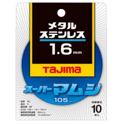 タジマ スーパーマムシ 105 1.6mm メタル ステンレス 切断砥石 10枚入 SPM-105 ベビーサンダー ディスクグラインダー