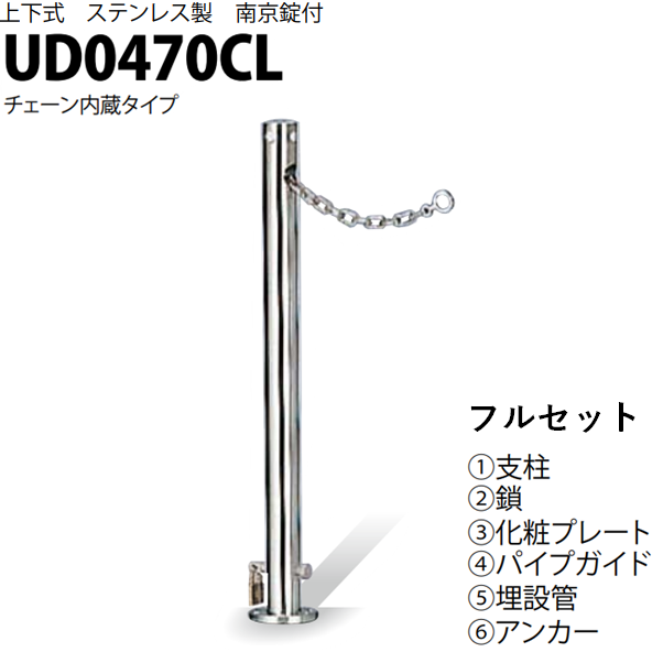 カネソウ 車止め Φ48.6×700 UD0470CL フルセット Uシリーズ 上下式 ステンレス製 南京錠付き チェーン内蔵