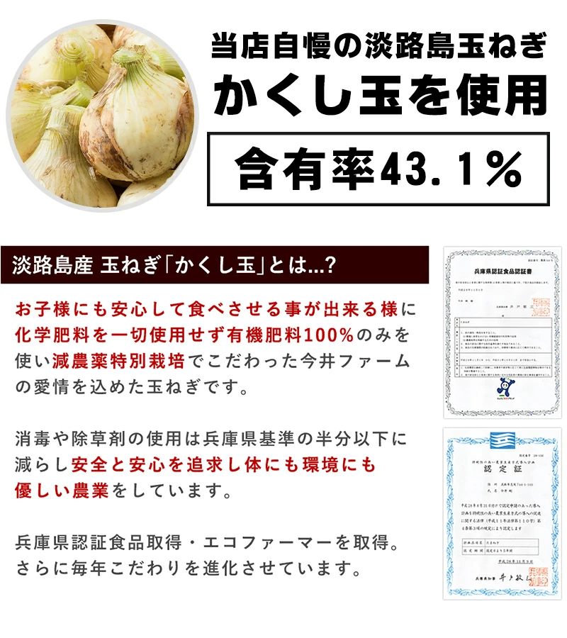 玉ねぎ(淡路島産)、キャノーラ油、米酢、粗糖、食塩