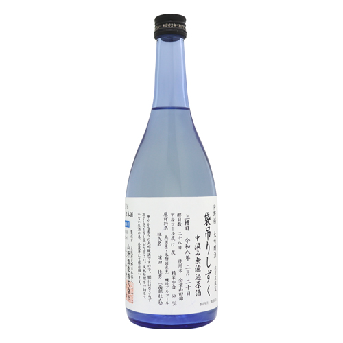 「大吟醸 袋吊り」とは、モロミを袋で吊るし、一切圧力をかけず自然に滴り落ちる雫だけを集めたお酒と、中汲みを合わせたごく少量しかとれない貴重なお酒です。