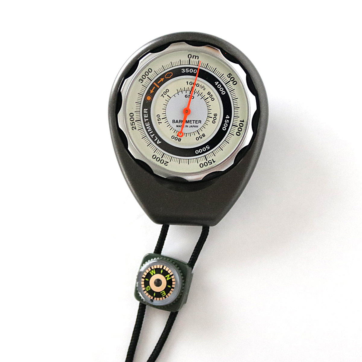 メタリック塗装ケース・ストラップ付なので、登山・トレッキングの際、快適にサポートしてくれます。オイル入りコンパスも付属されています。アナログ高度計なので、電池不要。