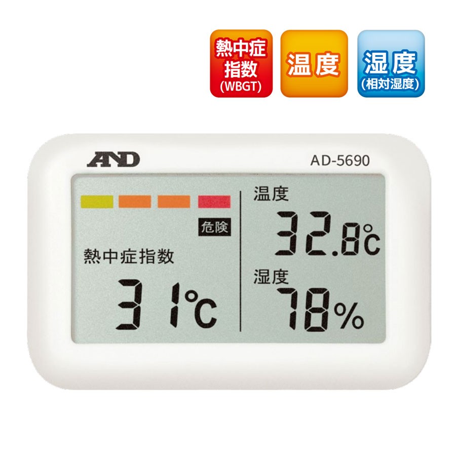 熱中症計をはじめ温度計など計測器の専門メーカー、A&D社製の熱中症計。