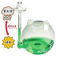 水位の上下の動きでお天気の変化を予想します。バロメーター(気圧計)の原理を使用した簡易的な天気予報インテリアです。お天気かえるに水を注入するだけで気圧の変化が管の水位にあらわれ、数時間後の天気を予測します。