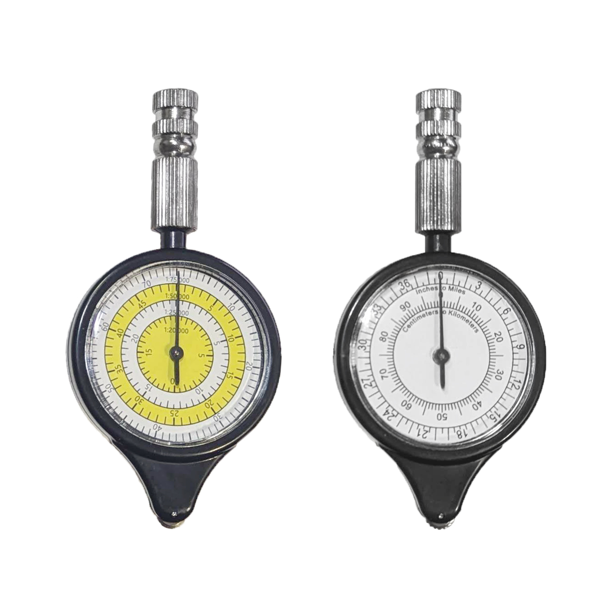 どんな縮尺の地図上でも曲線に沿ってローラーを回転させて、距離を読み取ることができます。