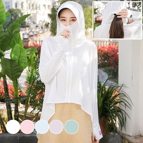 薄手なパーカーですが、長袖でつば広のフードと指穴付きのラッシュガードで紫外線から日焼けを防いでくれます。