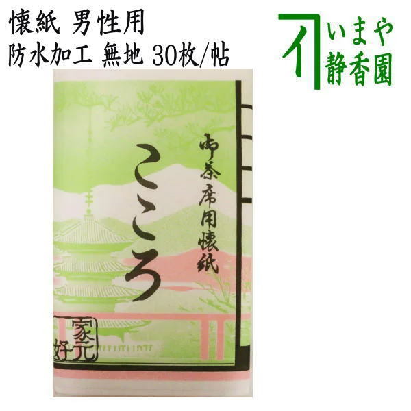 茶道具 懐紙 男子用 男性用 防水加工 無地 1帖〜 こころ懐紙本舗 茶道
