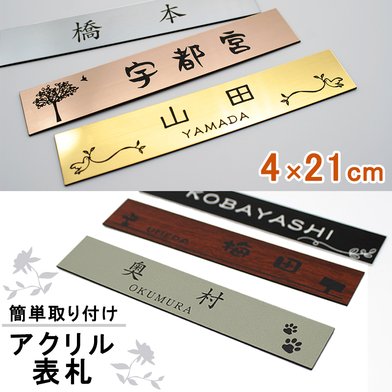 表札 シール 貼るだけ マンション ポスト 4×21cmサイズ ステンレス調 木目調 アクリル 戸建 プレート ネームプレート 6色 二世帯 メール便可