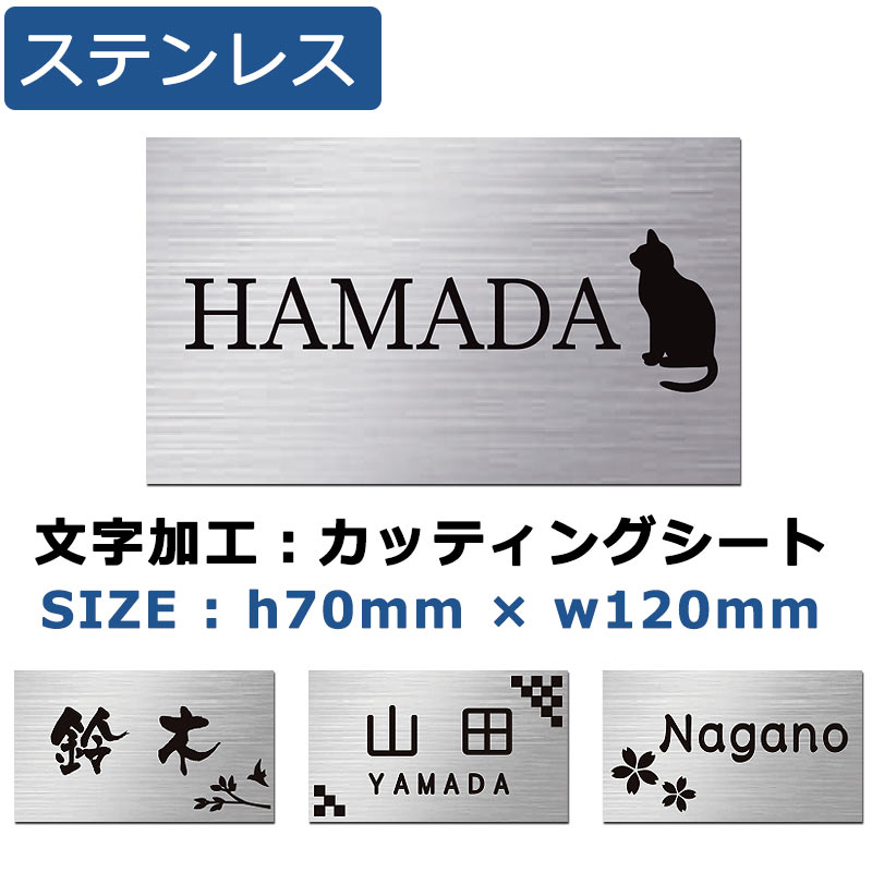 表札 ステンレス ポスト 12cm×7cm ヘアライン表札 プレート マンション表札 ネームプレート ルームプレート シール メール便可