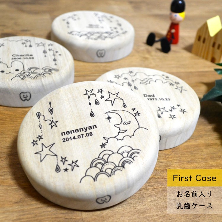 職人さんがひとつひとつ丁寧に作った桐の乳歯ケースに、デザインとお名前をつけてお送り致します。