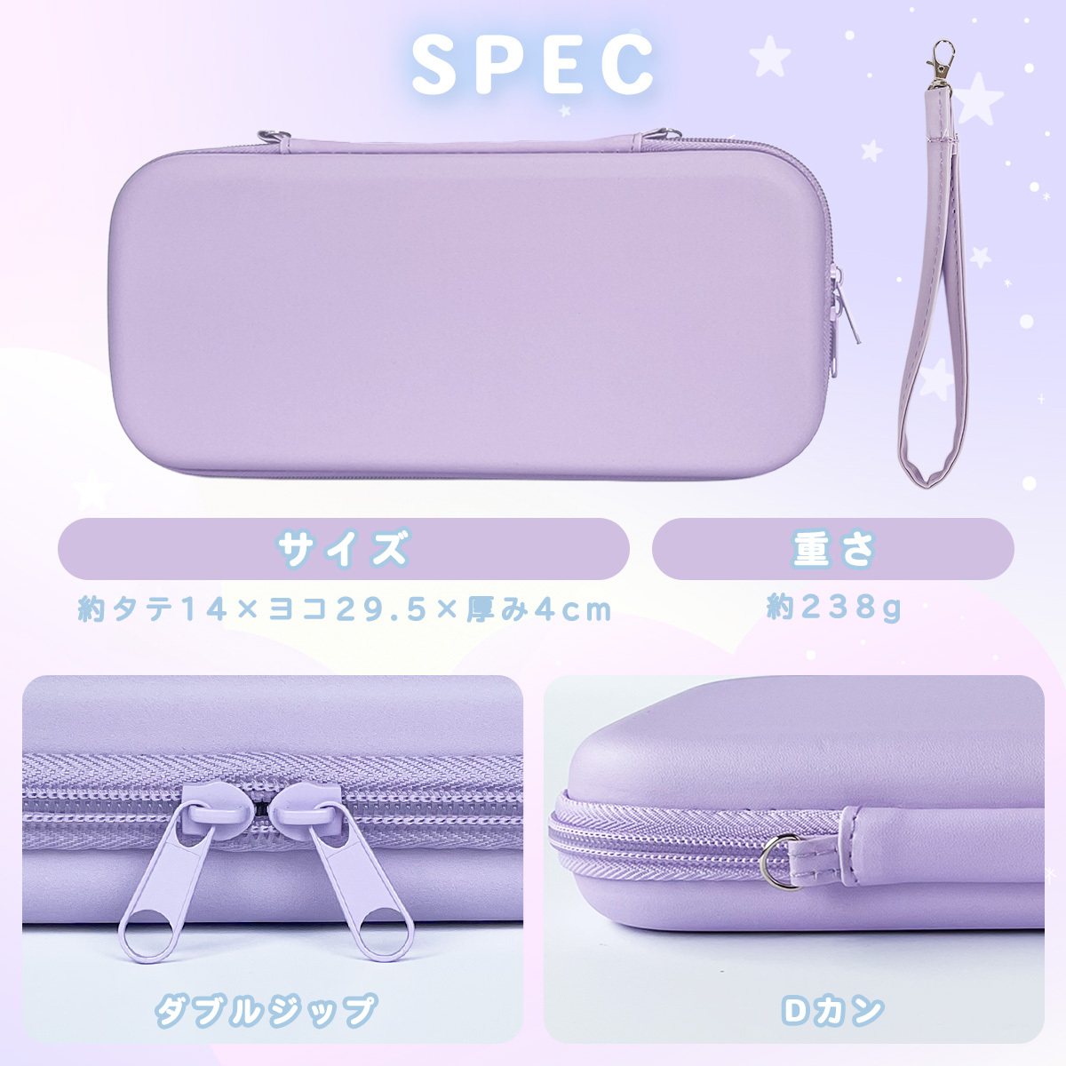 スリムな設計ながら、本体をしっかり保護してくれる安心の収納ケースです。