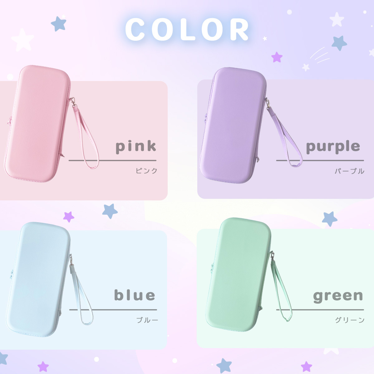 4色展開:パープル・ピンク・グリーン・ブルー