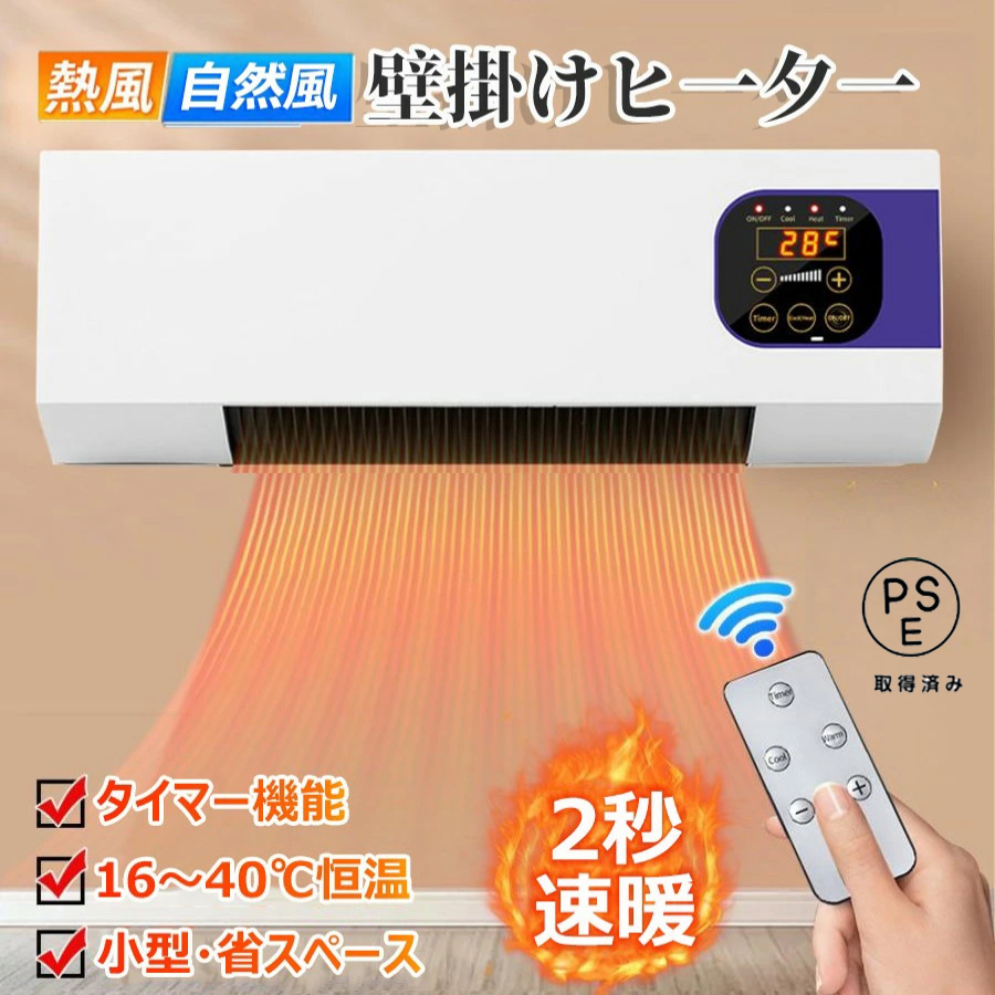 セラミックヒーター 壁掛けヒーター 脱衣所 暖房 暖房ヒーター ファンヒーター 壁掛け 冷温風扇 リモコン付き 即暖 省エネ コンパクト 小型エアコン 寒さ対策