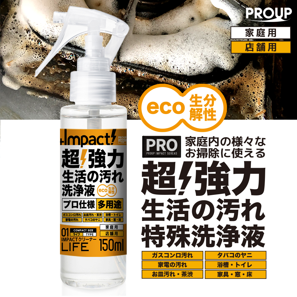 有吉ゼミ【水拭き不要】高洗浄力! 油汚れ洗剤 換気扇 コンロ キッチン 厨房 ヤニ クロス 床 壁 家庭用 インパクトクリーナー(ライフ) 150ml スプレー