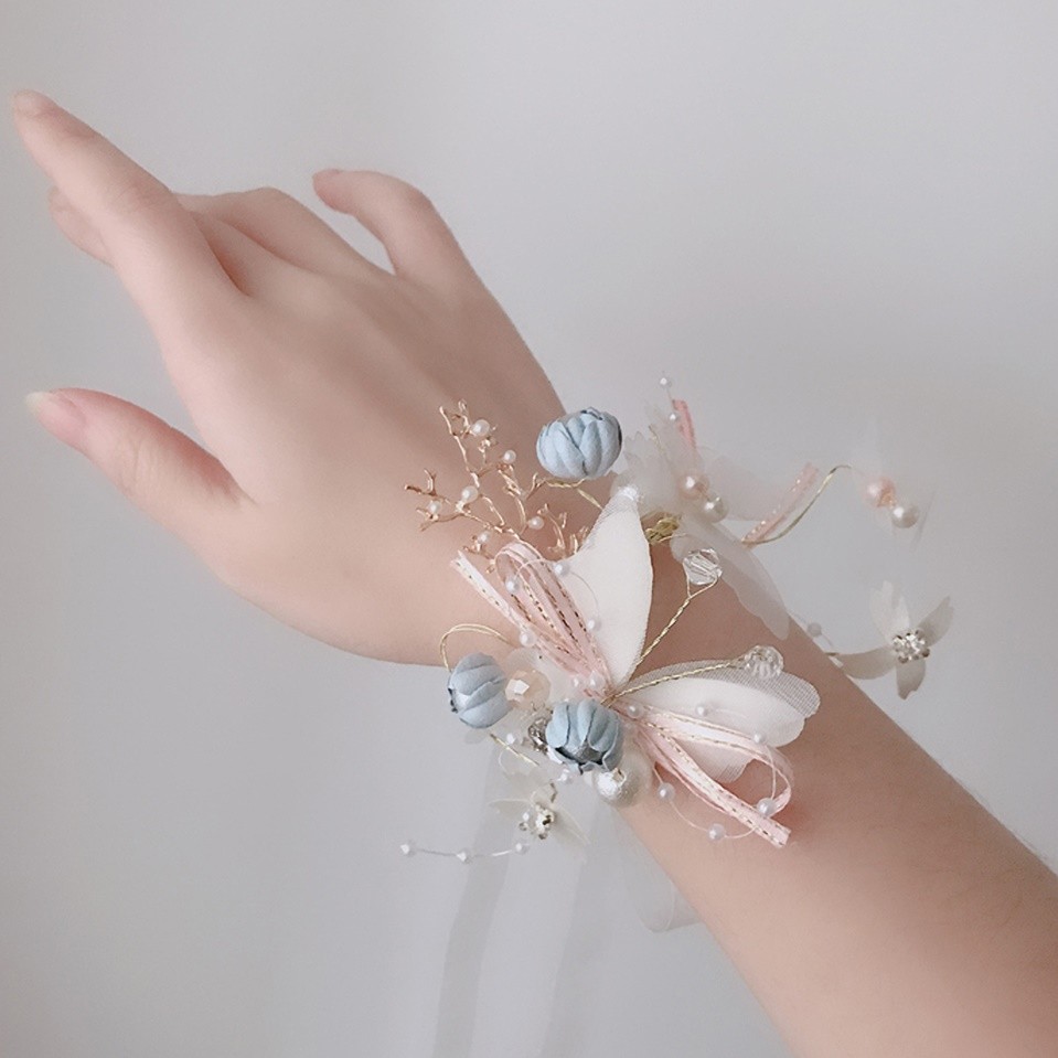 ブレスレット アクセサリ リストバンド ピアノ 発表会 女の子 キッズ 蝶々 花 ピンク ホワイト ブルー リボン 結婚式 ブライダル ウエディング 写真撮影 (HC41)