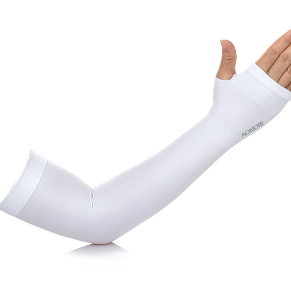 アームカバー メンズ/レディース 指穴付 UV UPF50+ 日焼け防止 テニス ウォーキング ジョギング 自転車 ドライブ (ホワイト)