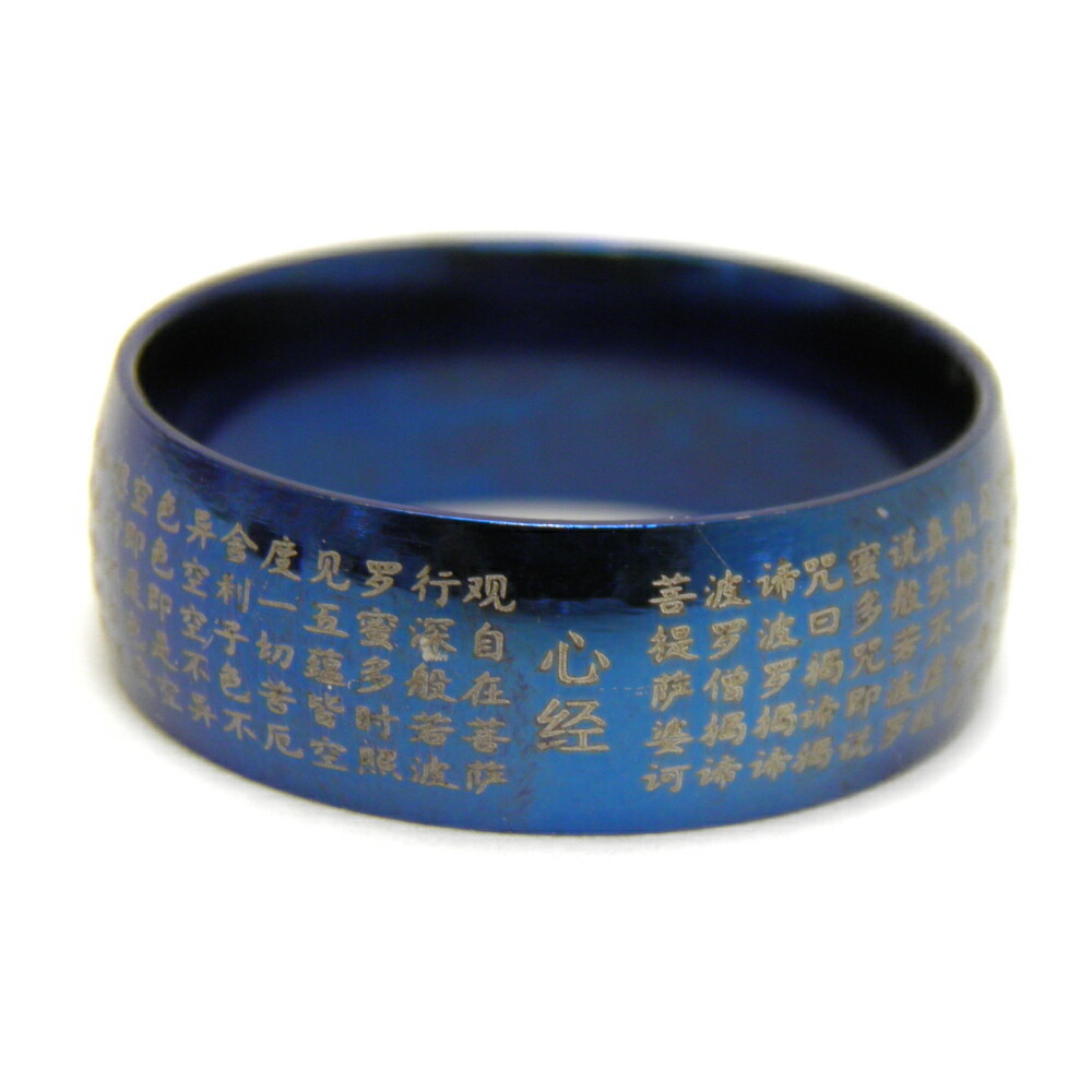 般若心經 リング 11号 青 ステンレスチタンコーティング プチギフト 転勤 退職 お礼 母の日 ギフト