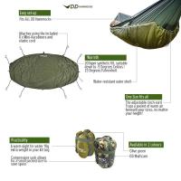 ハンモックキャンプでは、寝袋やダウンコートが自身の体重で圧縮されるため、大部分の熱が下に逃げます。DD ハンモックアンダーブランケットは、ハンモックの下に装着するので圧縮されず、体の熱によって暖められた空気の層をハンモックとブランケットの間に形成することにより、暖かい断熱を実現します。(※暖かい断熱を実現するため少しゆったりめに装着してください。)