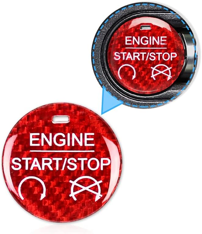 AIRSPEED for Ford Mustang Carbon Fiber Car Engine Start Stop Button Sticker Interior Trim Compatible with Ford Mustang 2015-2022 (Red)