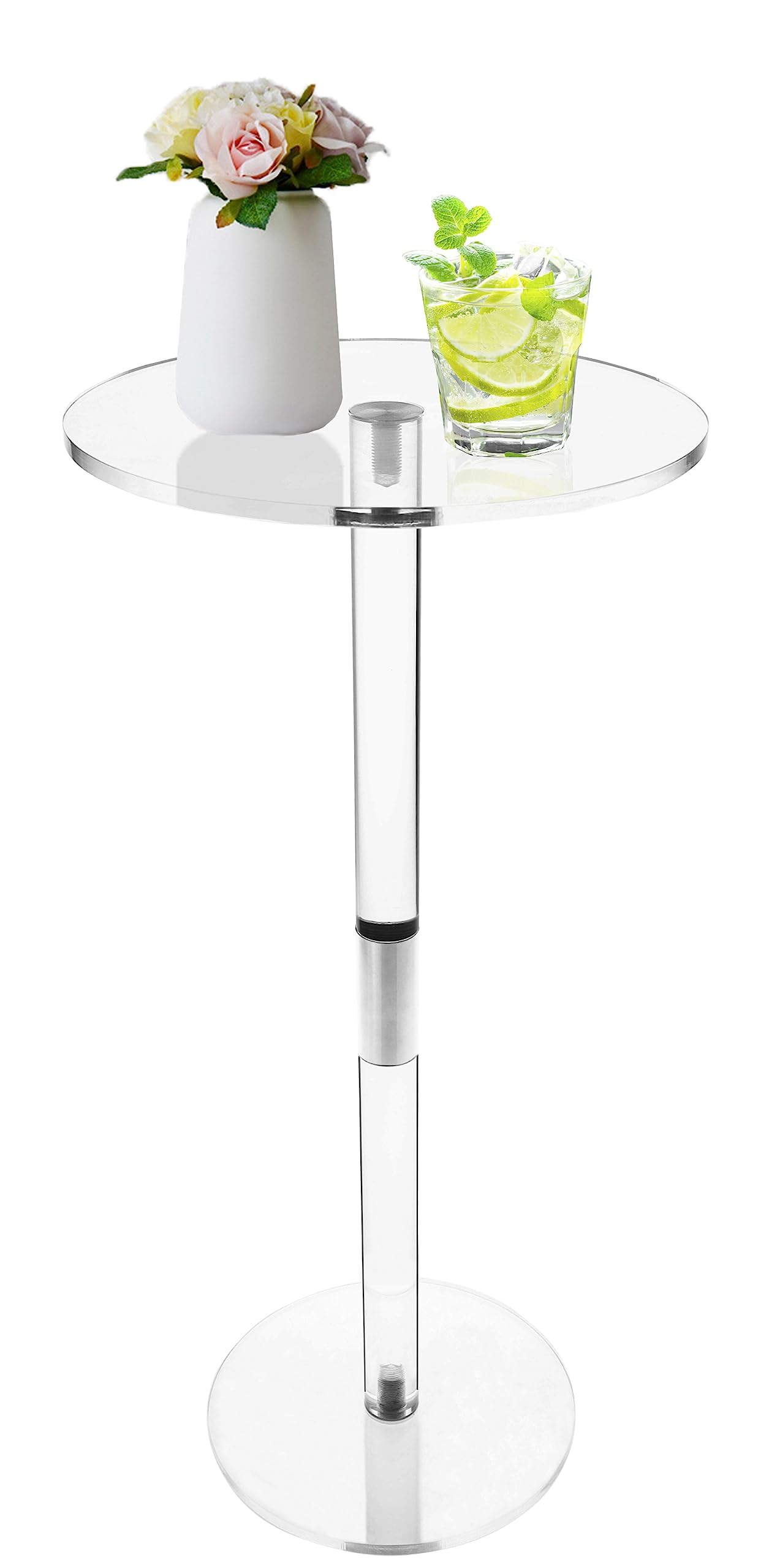 CRAFTFORCE Clear Acrylic Drink Table, Small Round Side Table for Small Spaces, 10" L x 10" W x 21.3" H, Minimalist Acrylic Side Table for Living Room, Bedroom, Bathroom, Hallway, Balcony