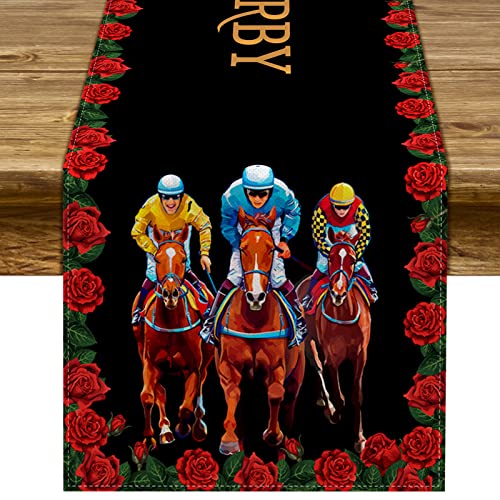 Nepnuser ケンタッキーダービー テーブルランナー ジョッキーラン バラ 競馬パーティー装飾 ホームキッチン ダイニングルーム装飾 72インチ Nepnuser Kentucky Derby Table Runner Jockey Run for The Roses Horse Racing Party Decoration Home Kitchen Dining Room Decor 72inches