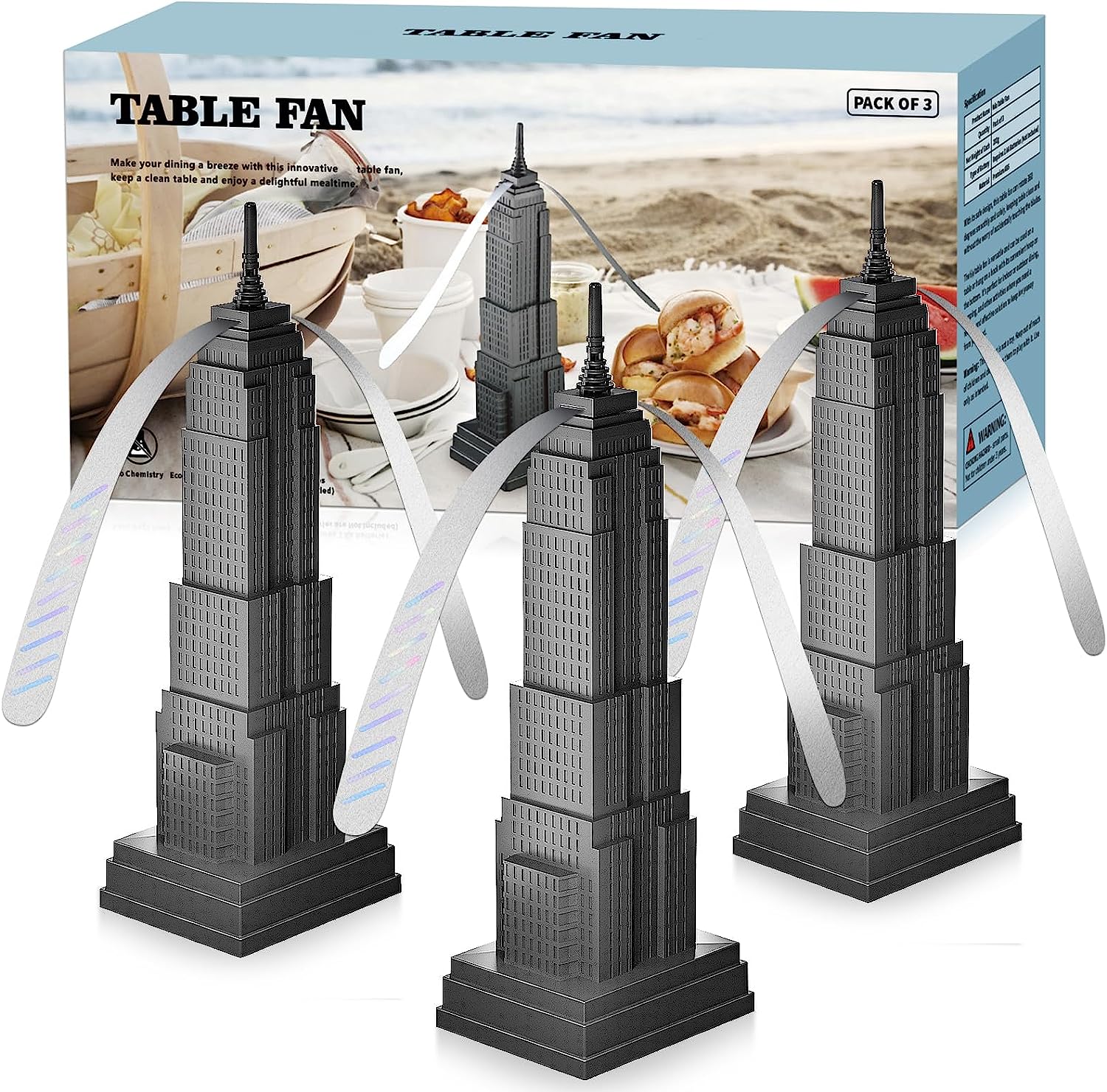 Novabrez Food Fans for Tables, Picnic Table Fan for Outdoors Indoor, Safe Blades Table Fan to Keep Picnic Table Clean (Pack of 3)