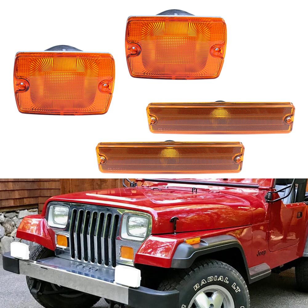 Tonsya アンバーハウジング フロントバンパーウィンカーハウジング サイドマーカーライトハウジング 4個 Tonsya Amber housing for 1987 1988 1989 1990 1991 1992 1993 1994 1995 Jeep Wrangler YJ Front Bumper Turn Signal housing+Side marker lights housings 4pcs