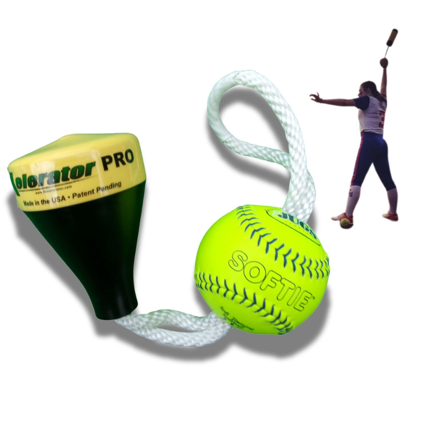 Mini Xelerator Pro 10u ファストピッチ ソフトボール ピッチングトレーナー ウォームアップツール 11インチプレミアムレザーインドアボール付き グリップを向上 The Mini Xelerator Pro 10u Fastpitch Softball Pitching Trainer and Warm Up Tool with 11 Inch Premium Leather Indoor Ball for Improved Grip Made in USA