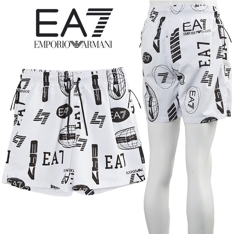 EA7 水着 メンズ インナー付 総柄 サーフパンツ ホワイト 7M000520-AF13069-F0043