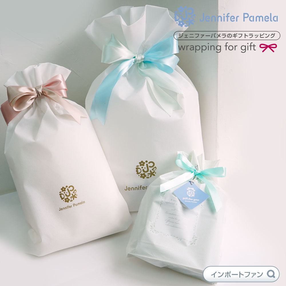 | ・お祝いの種類があればカート内で備考欄にご記入ください。(例:誕生日用、母の日用、男性用など) ・こちらはJennife Pamelaの商品専用ラッピングとなります。Jennifer Pamela以外の商品のみを購入の場合は、通常袋ラッピング(550円)に変更して対応させていただきます。 ・ラッピング袋を必ずご希望商品と同じ買い物カゴに入れてご注文お願いします。こちらのラッピング袋単品でカゴに入れるなどお買い物商品と別々にご注文頂きますと自動的にキャンセルとさせて頂きます。 ・ご購入頂いた商品に合わせてサイズを選ぶため袋のサイズやカラーは選択できません。 専門のスタッフが商品に合わせた資材でラッピングいたします。 ・メッセージカード、手提げ袋は別途購入ページよりカートに入れてご購入ください。 | |