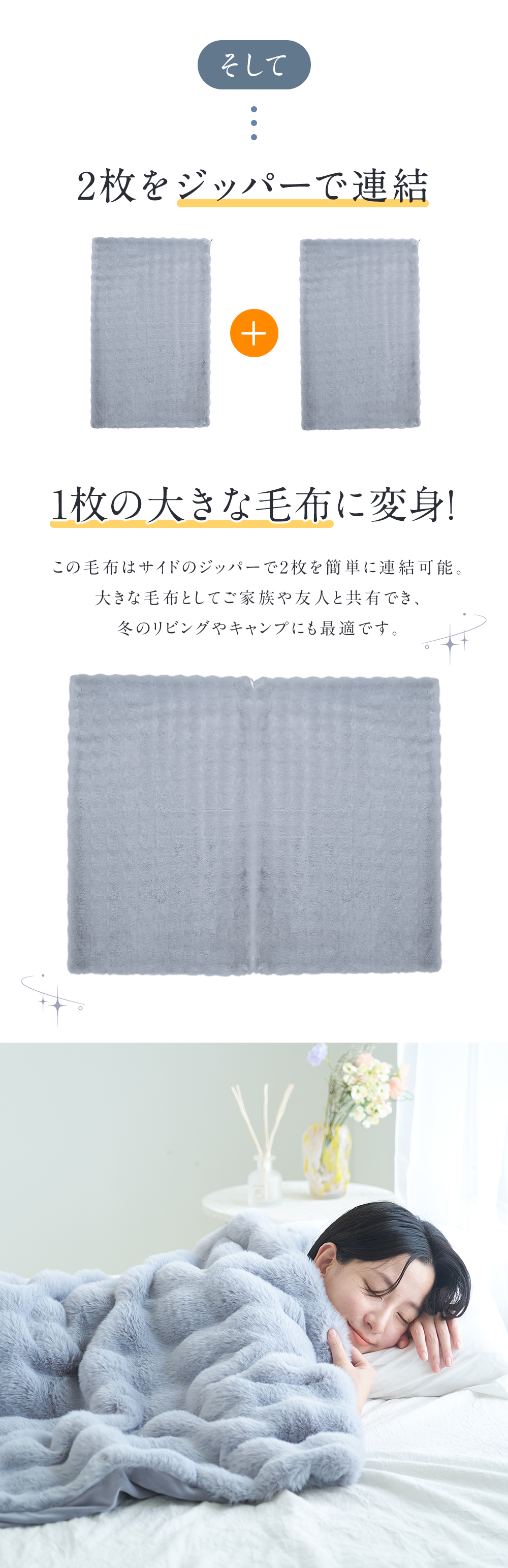 ・サイドジッパーで2枚を連結して大きな毛布にも変身