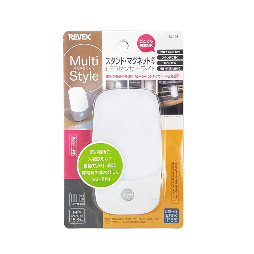 送料無料 LEDセンサーライト スタンド マグネット 停電 乾電池 屋外 ホワイト SL108 リーベックス Revex