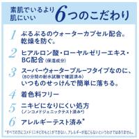 水感ジェルで、肌にすっとなじみ、重ね塗りしてもベタつかず快適な使用感です。ヒアルロン酸やローヤルゼリーエキスなどの保湿成分を配合し、乾燥を防ぎます。