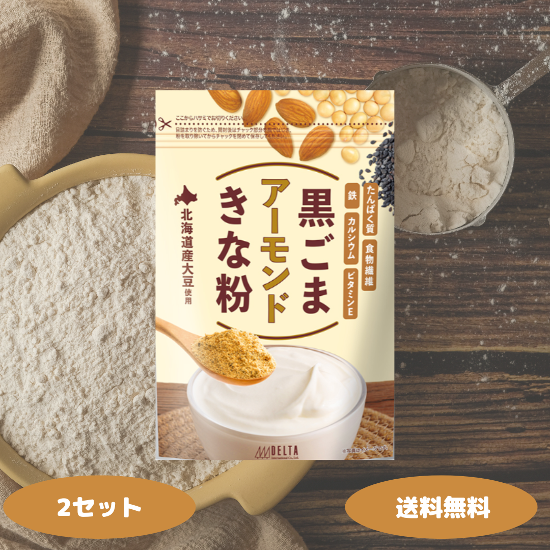 黒ごまアーモンドきな粉 220g 2セット 黒ゴマ 黒胡麻 アーモンド きなこ たんぱく質 食物繊維 鉄 カルシウム ビタミンE デルタインターナショナル