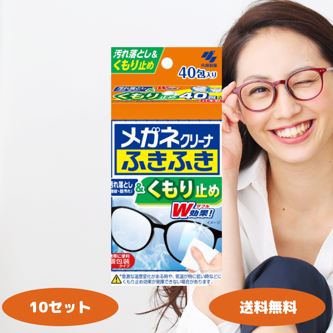 小林製薬 メガネクリーナ ふきふき くもり止め 40包入 10個セット 汚れ落とし 指紋 脂汚れ くもり止め 外箱から出して発送いたします