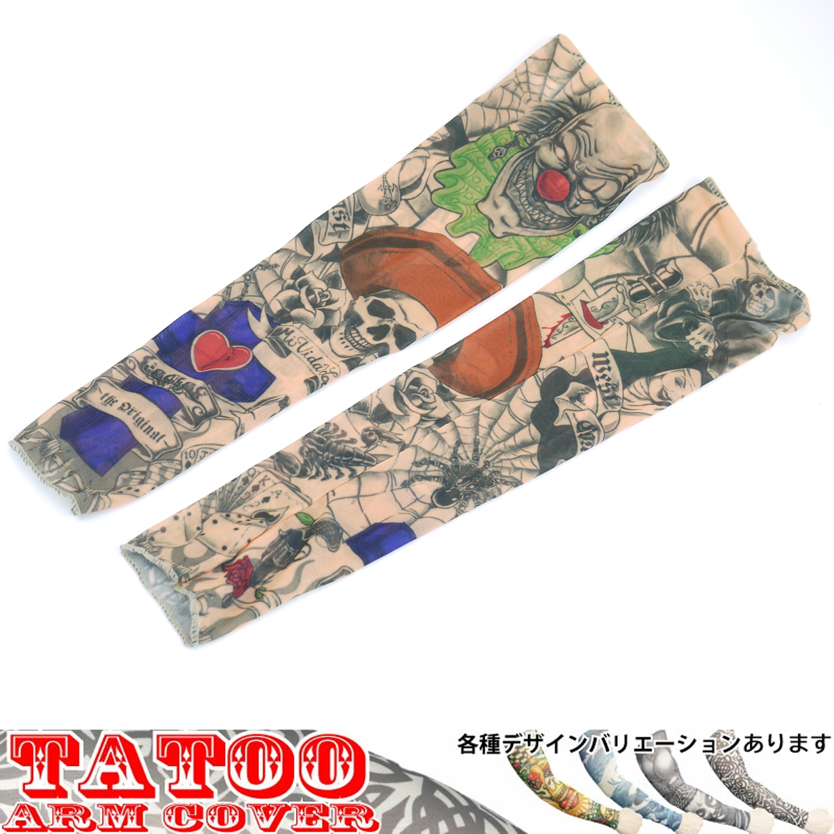 NO.09 タトゥーアームカバー 2枚セット 入れ墨 アームスリーブ ピエロ クロス 十字架 ゆうパケット対応