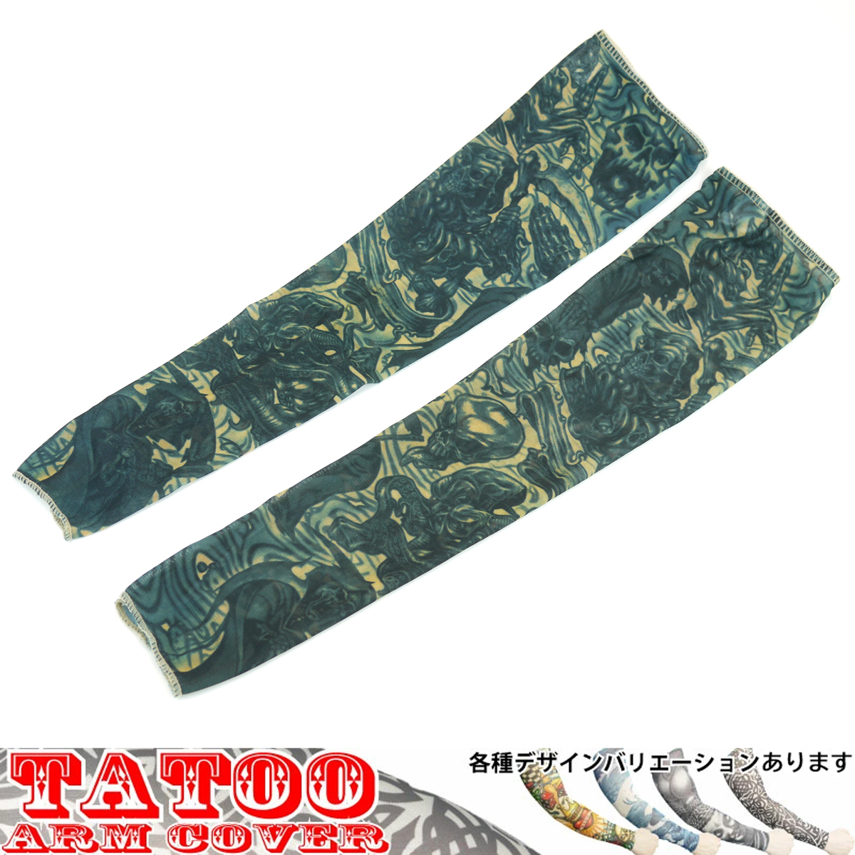 入れ墨 タトゥーアームカバー 2枚セット NO.12 アームスリーブ 煽り対策 デビル デス 悪魔 死神 ゆうパケット対応