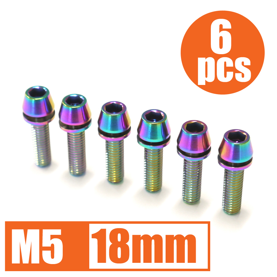 【商品コメント】汎用のワッシャー付きテーパーキャップチタンボルトの6本セットです。