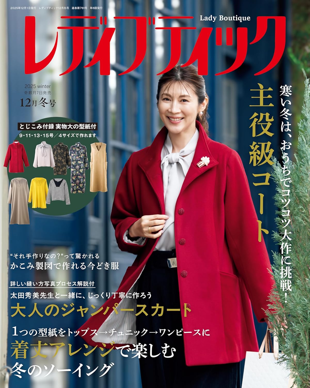 特集は「裏地付きで作る逸品コート」「着丈アレンジでお気に入りの冬服を」「目からウロコ太田秀美式ソーイング」を実物大の型紙&詳しい作り方付きでご紹介。