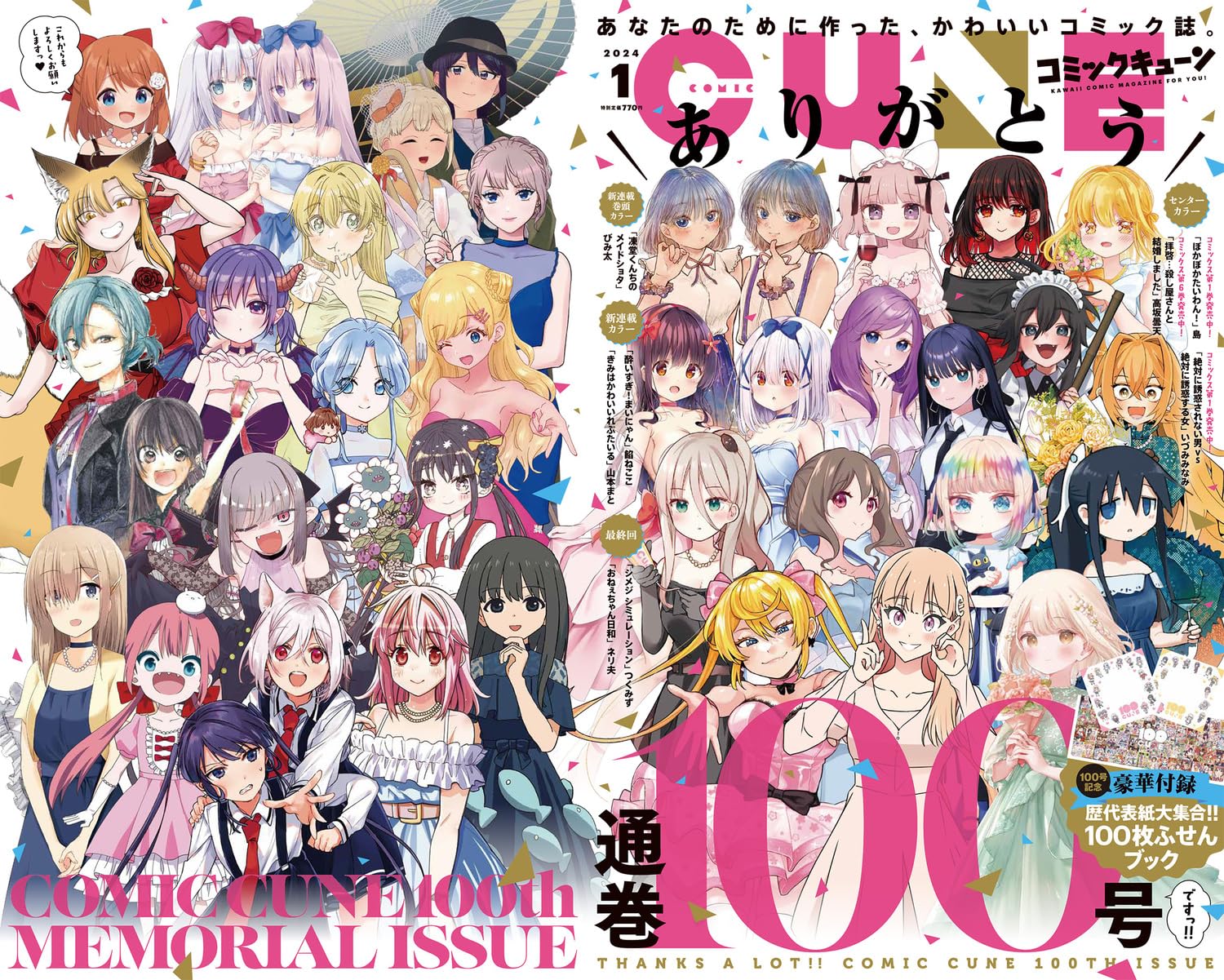 コミックキューン 2024年1月号 表紙:創刊100号記念!描き下ろし連載キャラ大集合表紙 付録:100枚付箋